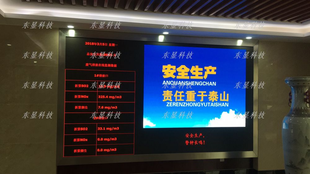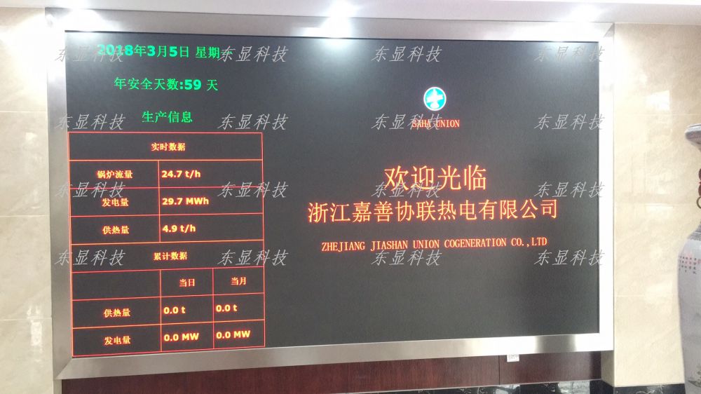 | 浙江嘉善协联热电有限公司办公楼LED大屏幕采用P2.0全彩小间距LED,通过东显大屏幕管理系统软件将企业生产和环保数据、企业宣传图片等进行循环展示,取得良好的效果! |