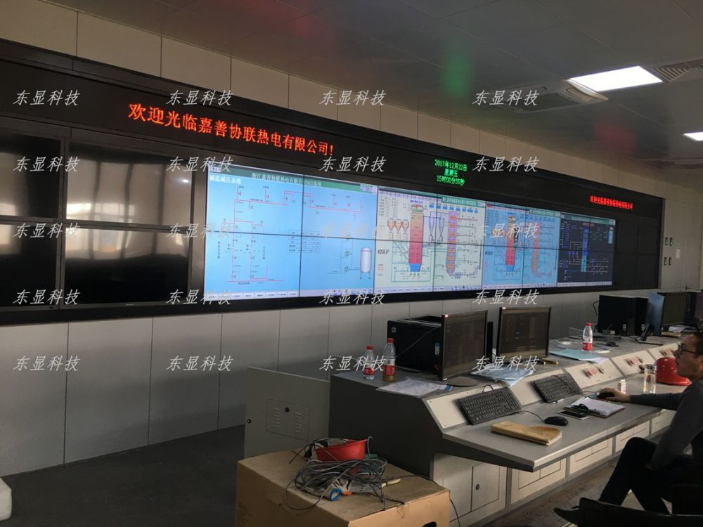 嘉善协联热电集控室大屏幕采用液晶46寸拼接屏,系统整体美观,帮助企业实现全厂实时管控,提升企业形象